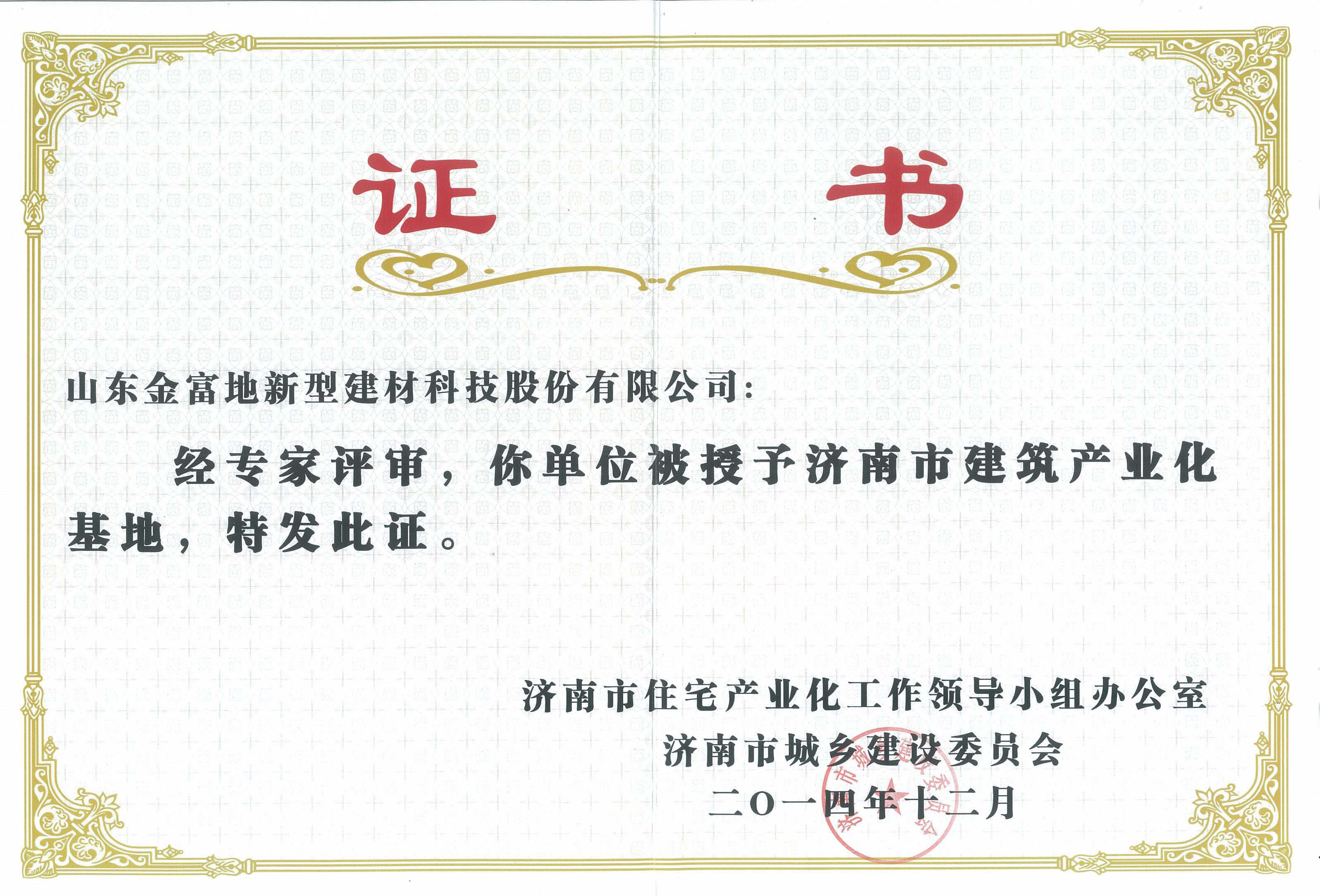 金富地股份致力于裝配式低能耗抗災房屋建造技術的研發生產,已完成中華人民共和國行業標準《聚苯模塊保溫墻體應用技術規程》、山東省建設科技成果《綠色農房建設技術導則》、山東省工程建設標準《裝配式建筑評價標準》、《EPS模塊保溫系統技術規程》、《EPS模塊現澆混凝土剪力墻結構技術規程》、《EPS模塊工業建筑圍護結構技術規程》等技術規程的編制發布。